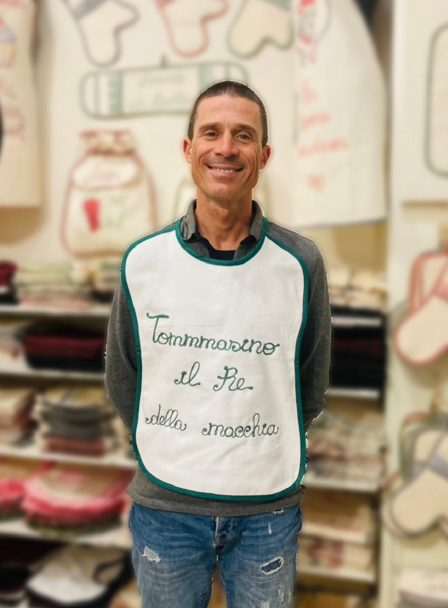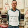 Babero de adulto en blanco con el borde en azul oscuro o verde bosque o burdeos.