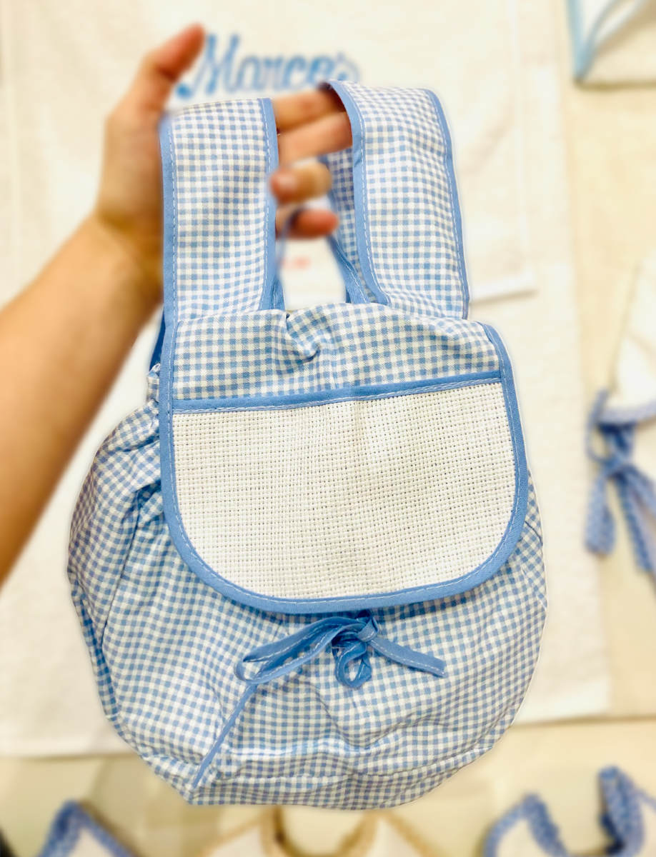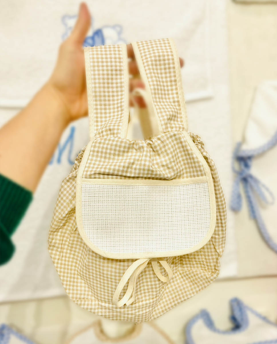 Mochila pequeña 100% algodón, para llevar las cositas del niño, para la guardería o colegio y para el carrito.