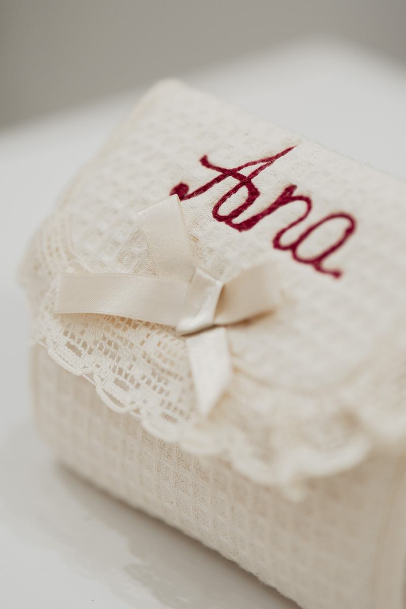 Tamaño 20cmx 13cm. Cierre de velcro. Si quieres para combinar recomendamos el Set toalla encaje.
